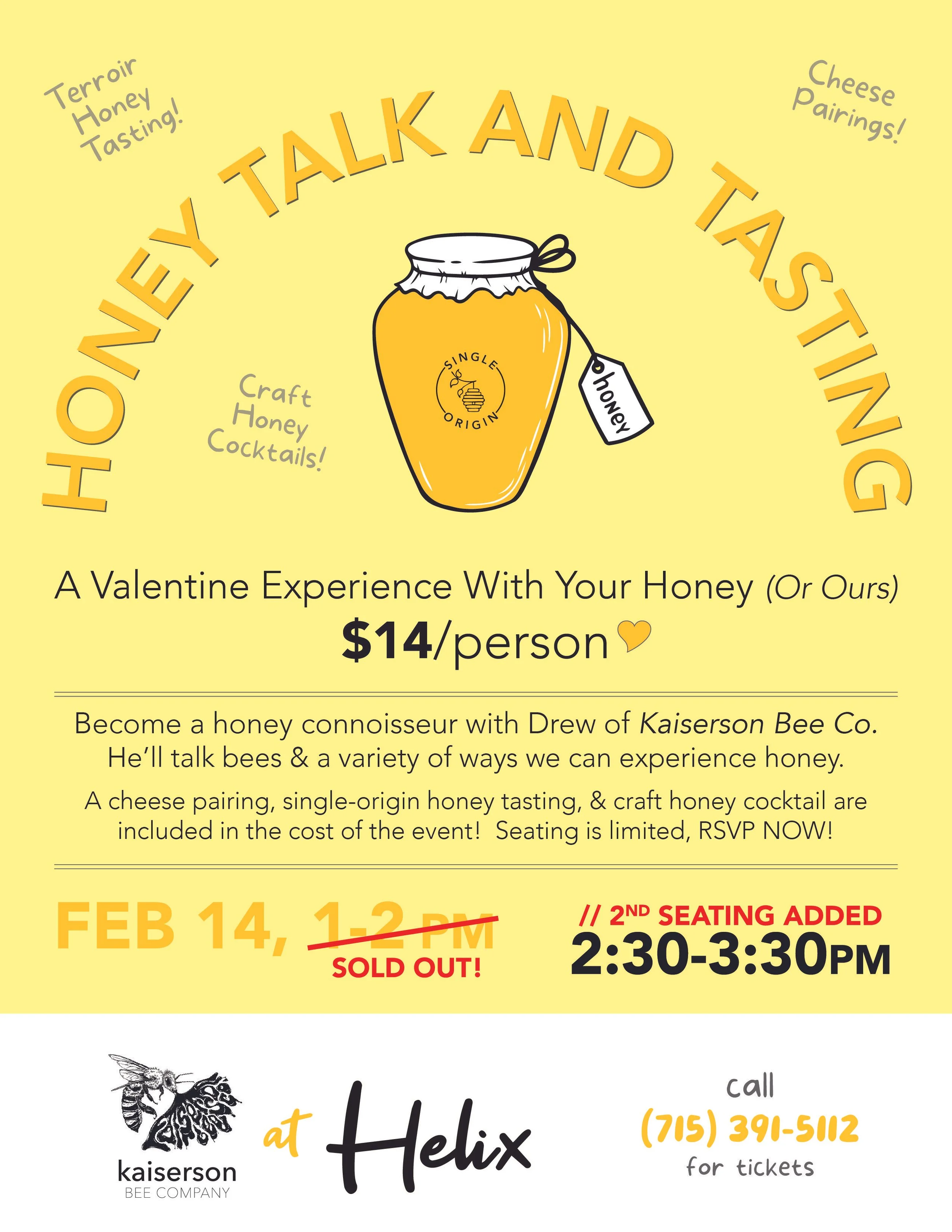 Become a honey connoisseur with Drew of Kaiserson Bee Co. He’ll talk bees and a variety of ways we can experience honey.